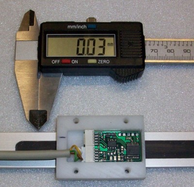 Versionen Es gibt zwei Versionen der Leiterplatte. Eine mit Prozessor und RS485, die für Busanwendungen gedacht ist und eine mit differentiellen Incrementalausgängen für den Anschluss von Anzeigesystemen, die diese unterstützen. Die Versionen mit Incrementalausgängen habe eine reduzierte Auflösung von 1,952µm. Die Platinengröße beider Versionen wurde idenstisch gestaltet, damit sich das gleiche Gehäuse verwenden lässt. |